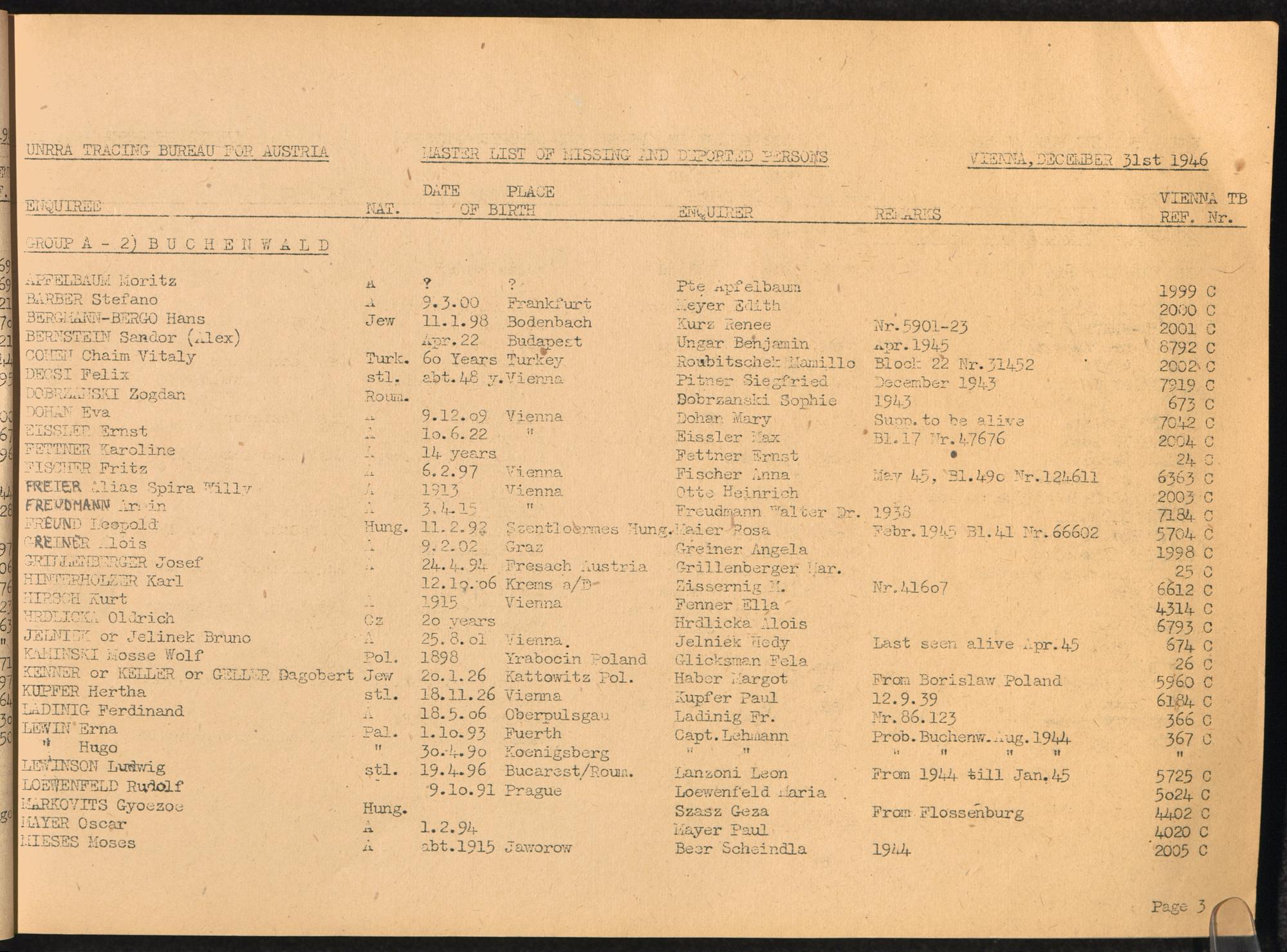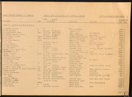Master List of Concentration Camp Victims : Consisting of all people listed by this bureau as missing or deported / Tracing Bureau for Austria