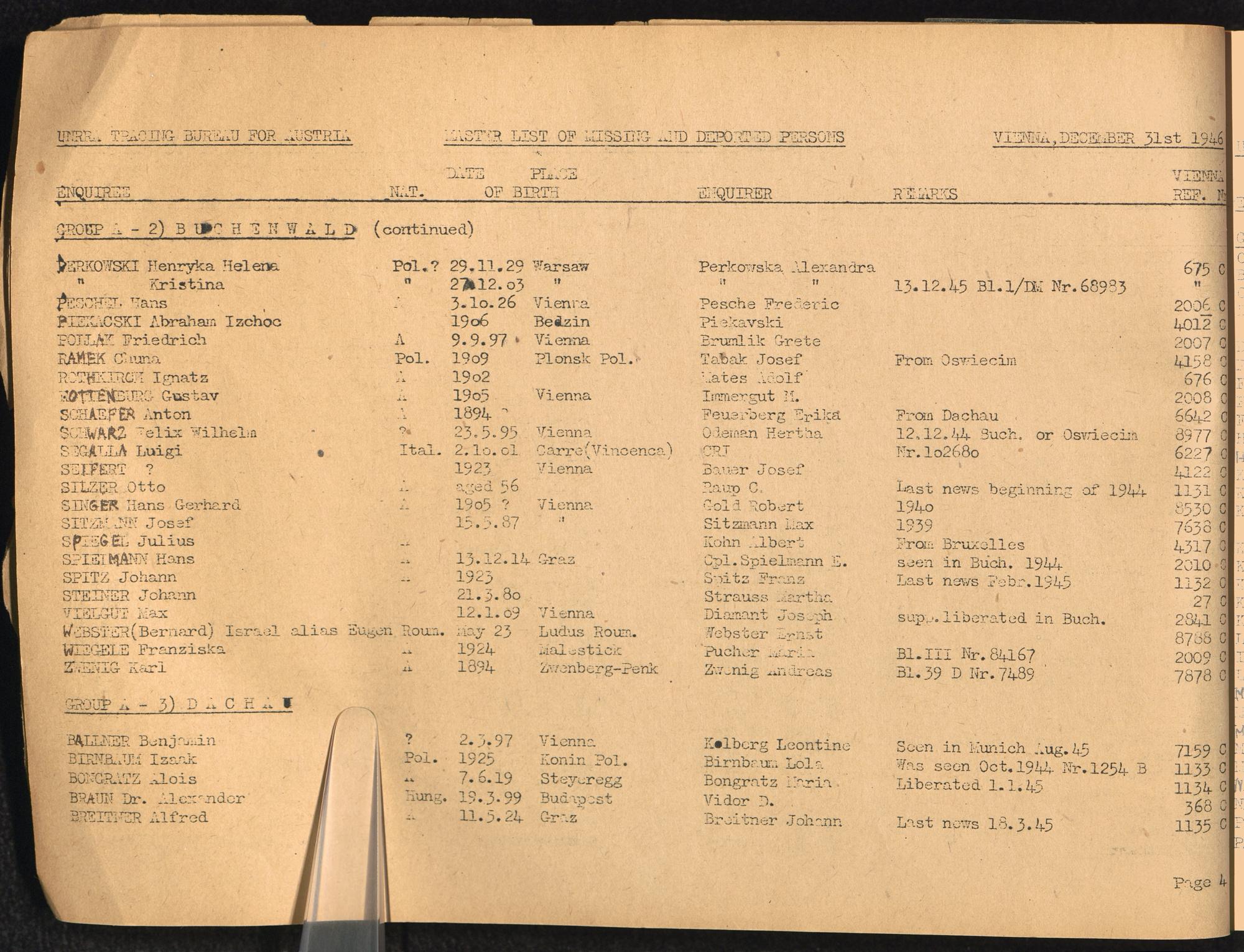 Master List of Concentration Camp Victims : Consisting of all people listed by this bureau as missing or deported / Tracing Bureau for Austria