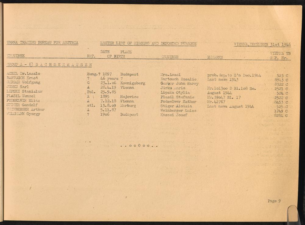 Master List of Concentration Camp Victims : Consisting of all people listed by this bureau as missing or deported / Tracing Bureau for Austria