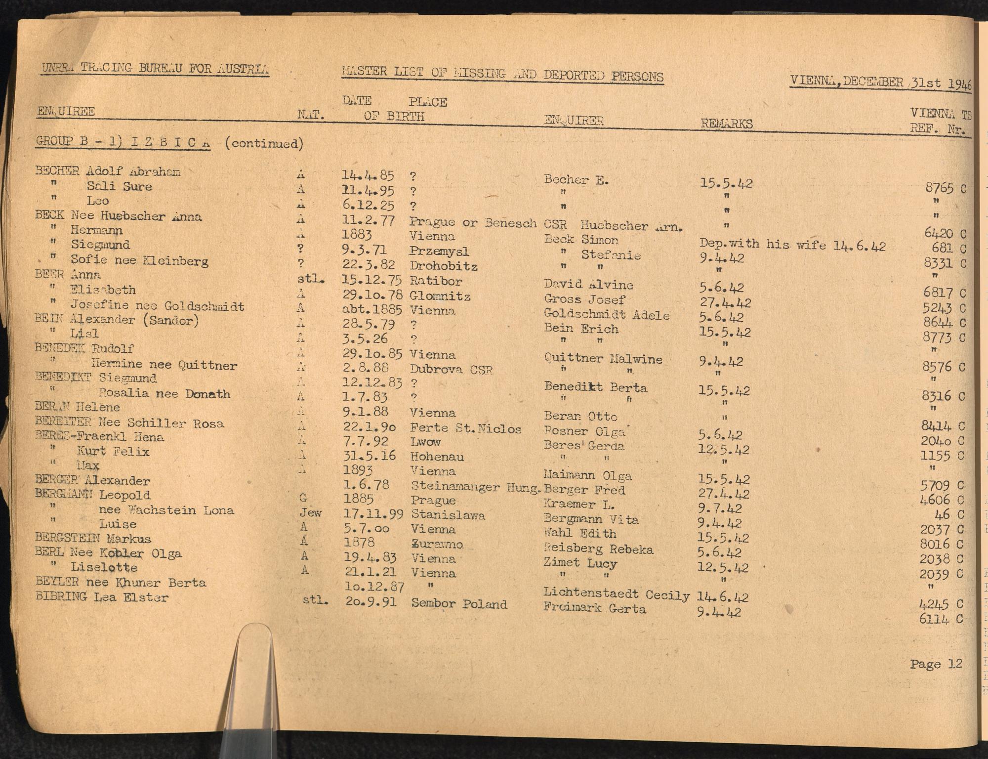 Master List of Concentration Camp Victims : Consisting of all people listed by this bureau as missing or deported / Tracing Bureau for Austria