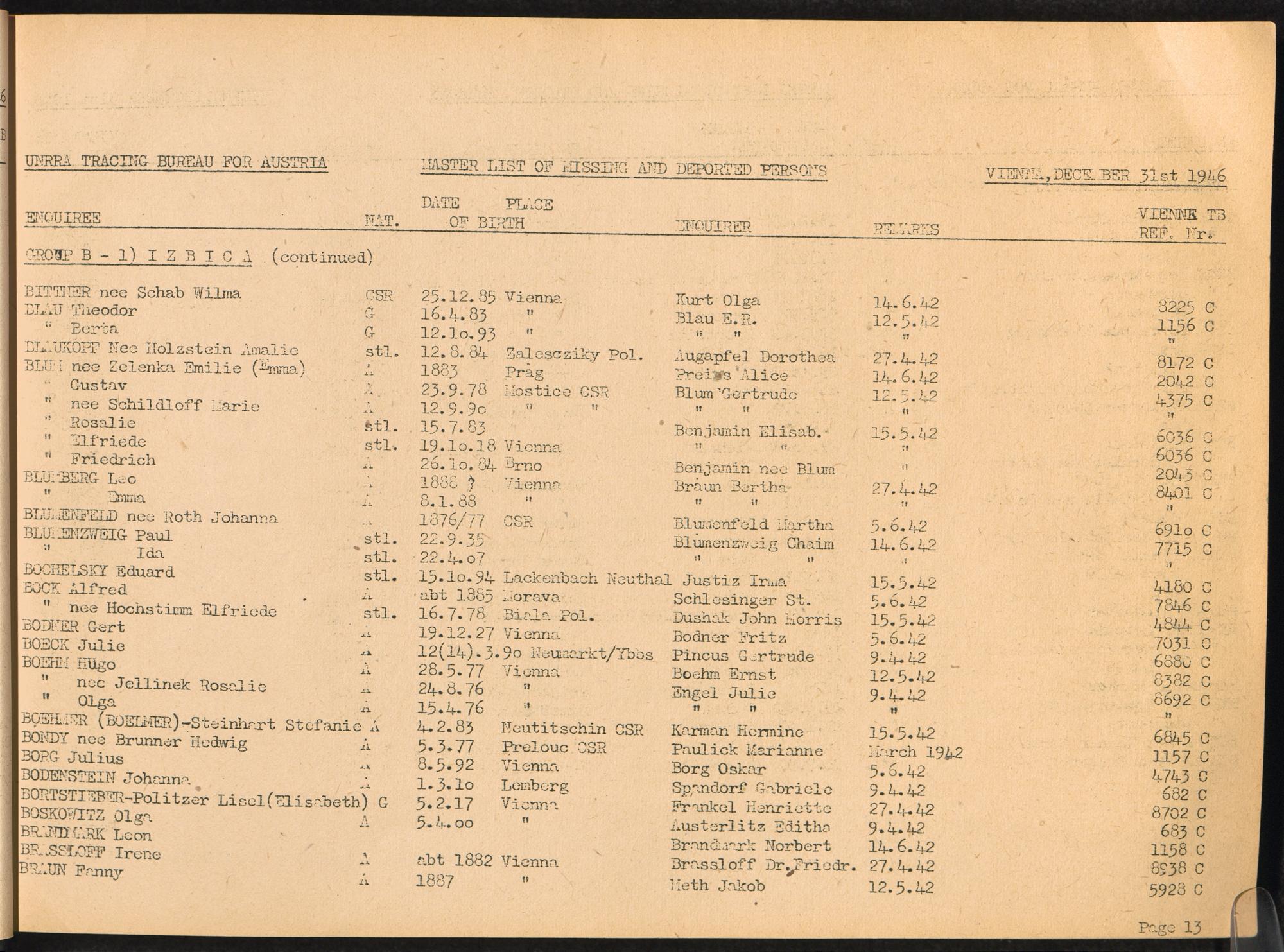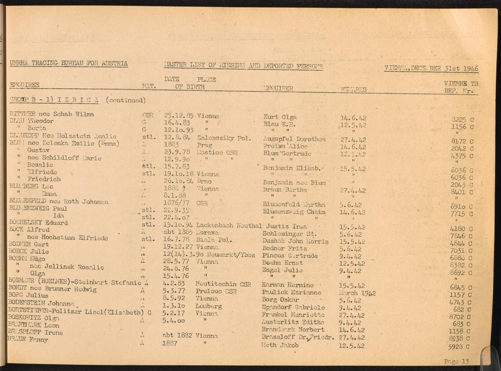 Master List of Concentration Camp Victims : Consisting of all people listed by this bureau as missing or deported / Tracing Bureau for Austria