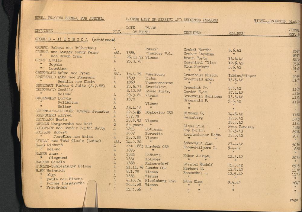 Master List of Concentration Camp Victims : Consisting of all people listed by this bureau as missing or deported / Tracing Bureau for Austria