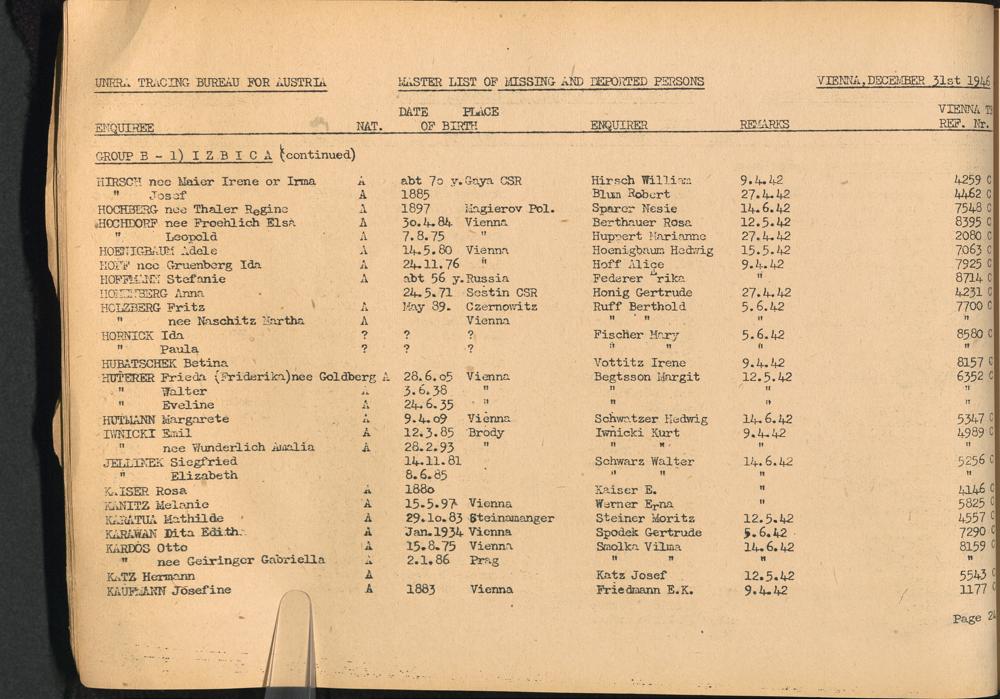 Master List of Concentration Camp Victims : Consisting of all people listed by this bureau as missing or deported / Tracing Bureau for Austria
