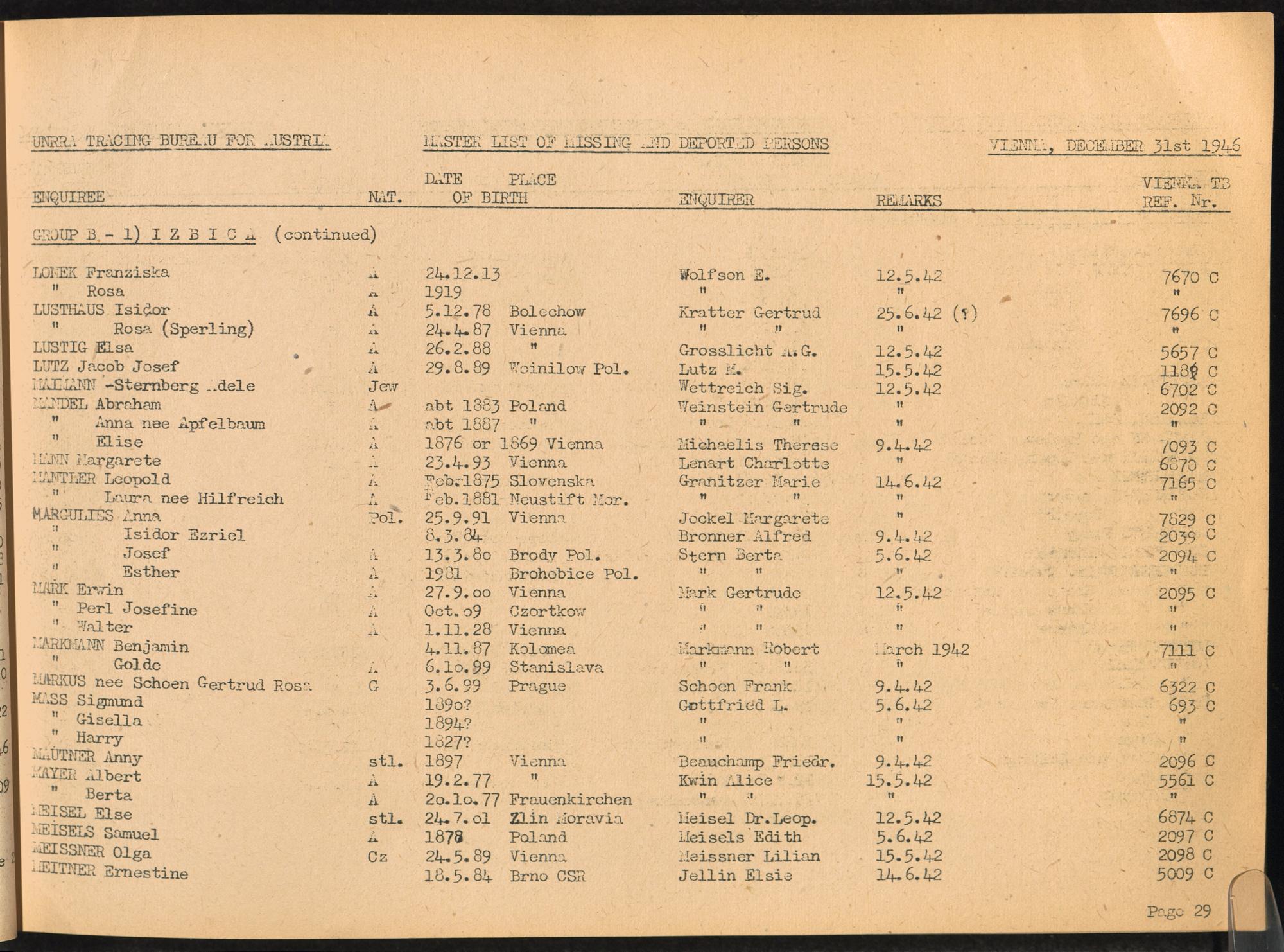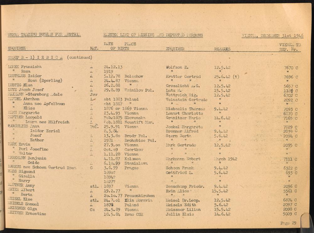 Master List of Concentration Camp Victims : Consisting of all people listed by this bureau as missing or deported / Tracing Bureau for Austria
