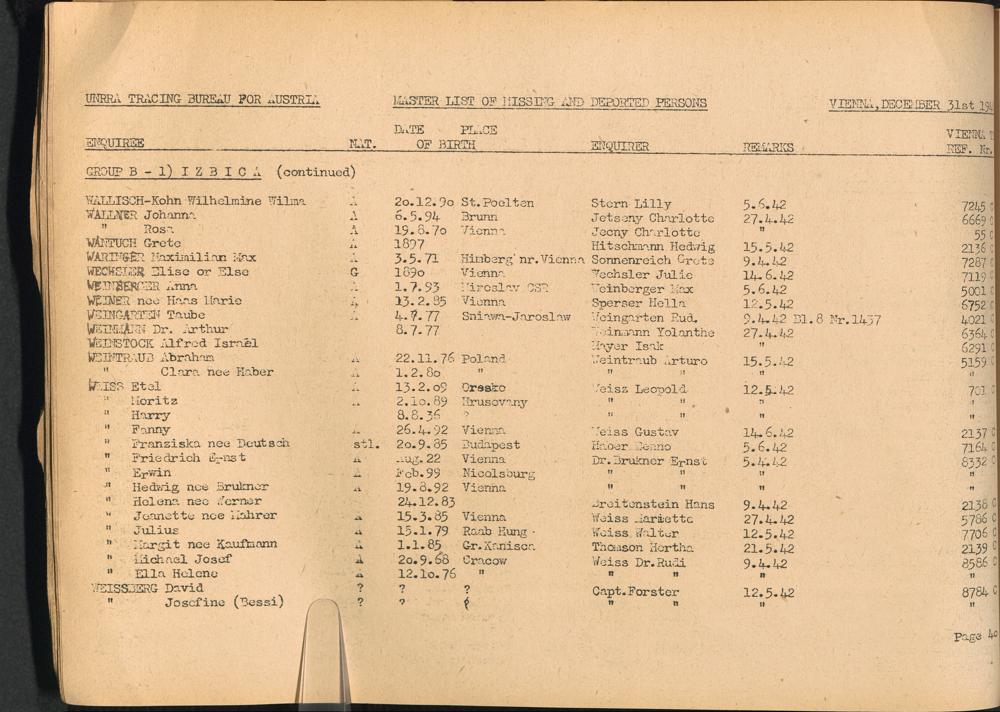 Master List of Concentration Camp Victims : Consisting of all people listed by this bureau as missing or deported / Tracing Bureau for Austria