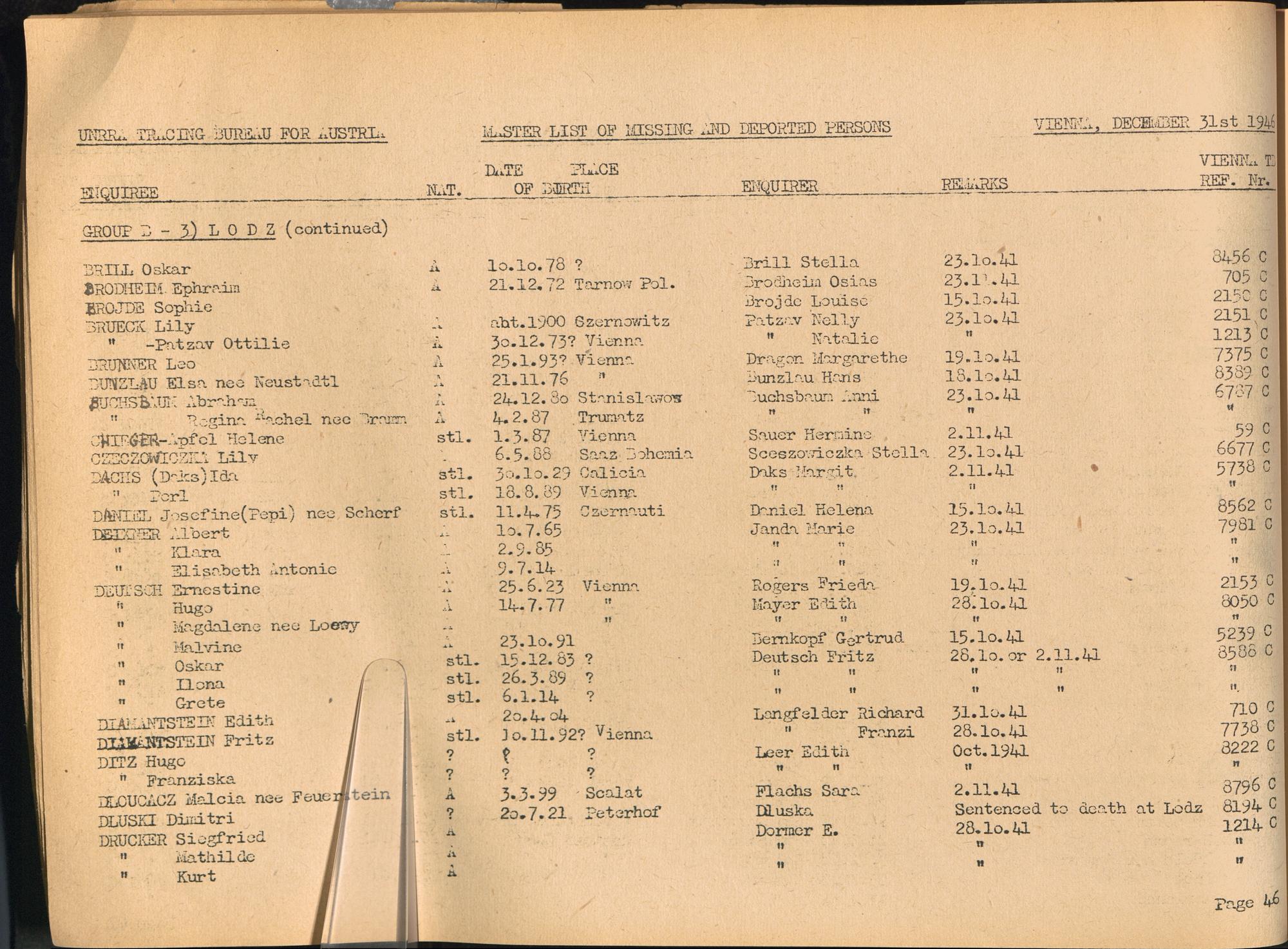 Master List of Concentration Camp Victims : Consisting of all people listed by this bureau as missing or deported / Tracing Bureau for Austria