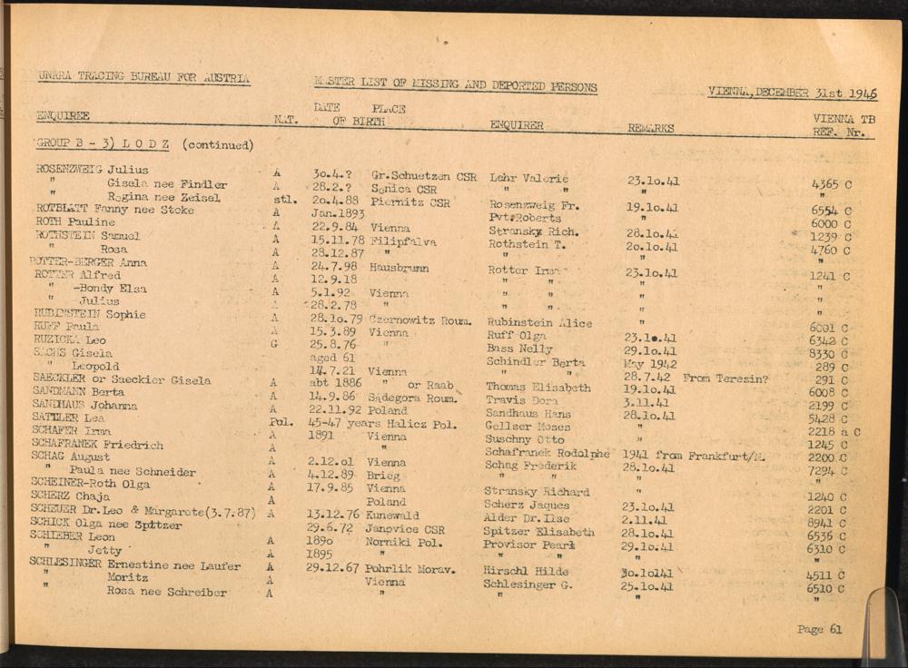 Master List of Concentration Camp Victims : Consisting of all people listed by this bureau as missing or deported / Tracing Bureau for Austria