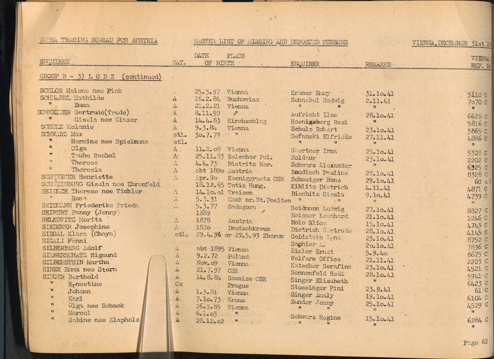 Master List of Concentration Camp Victims : Consisting of all people listed by this bureau as missing or deported / Tracing Bureau for Austria