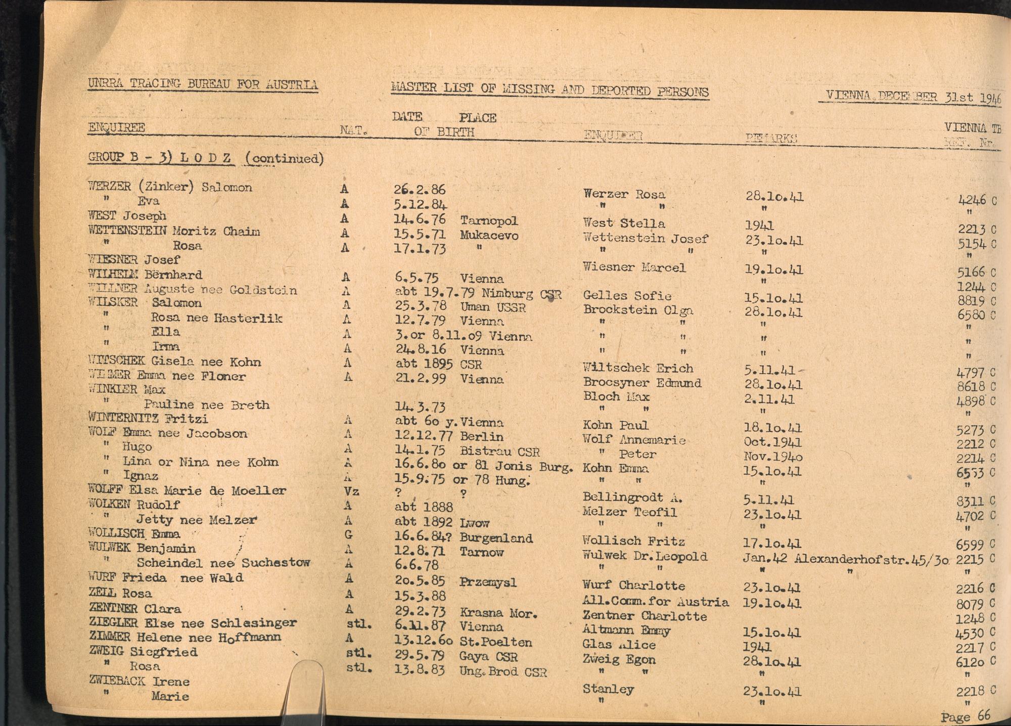 Master List of Concentration Camp Victims : Consisting of all people listed by this bureau as missing or deported / Tracing Bureau for Austria