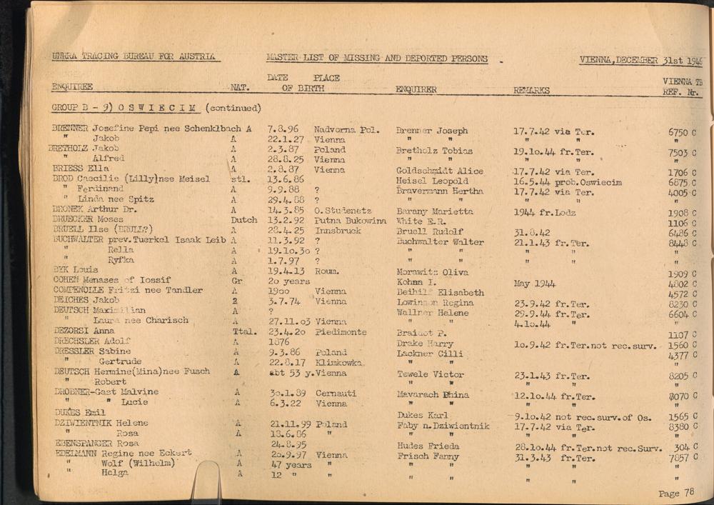 Master List of Concentration Camp Victims : Consisting of all people listed by this bureau as missing or deported / Tracing Bureau for Austria