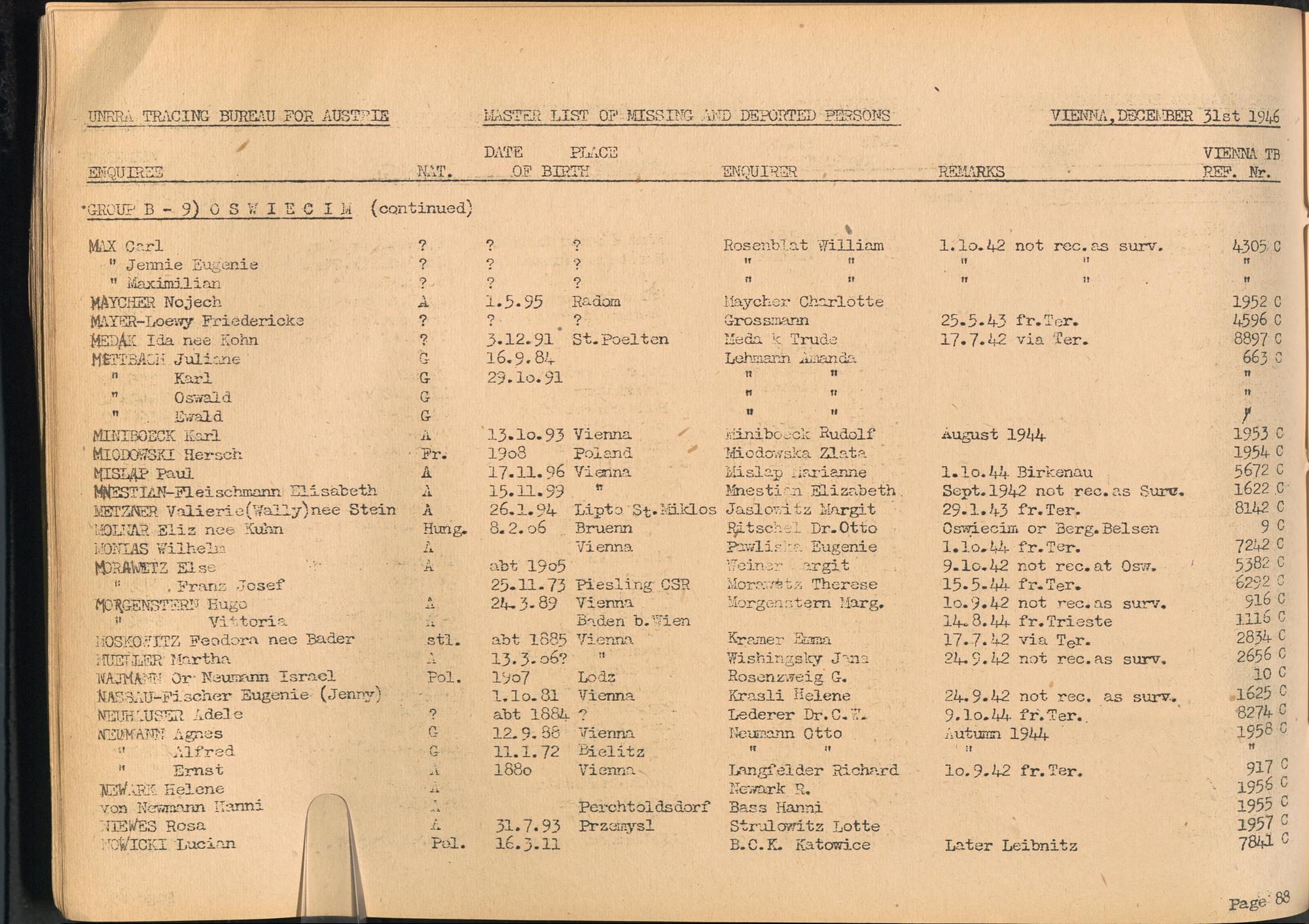 Master List of Concentration Camp Victims : Consisting of all people listed by this bureau as missing or deported / Tracing Bureau for Austria