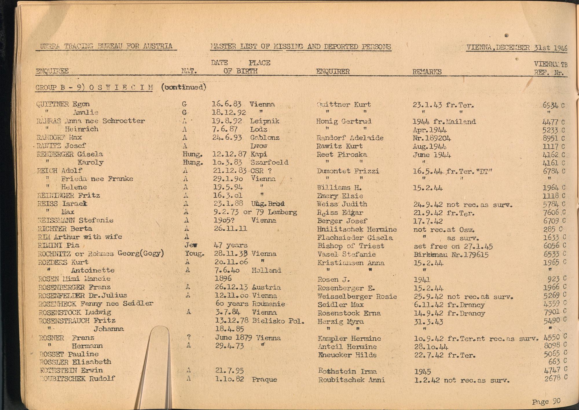 Master List of Concentration Camp Victims : Consisting of all people listed by this bureau as missing or deported / Tracing Bureau for Austria
