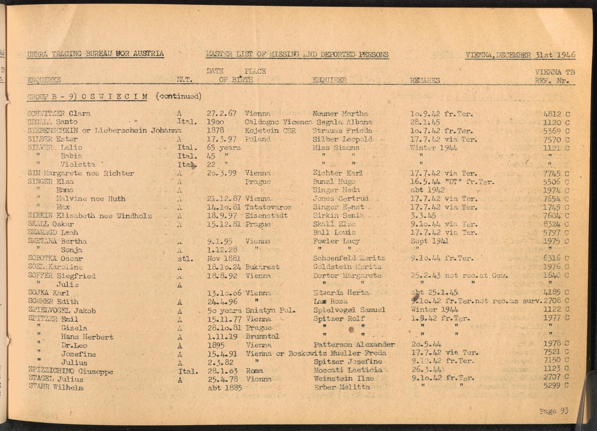 Master List of Concentration Camp Victims : Consisting of all people listed by this bureau as missing or deported / Tracing Bureau for Austria