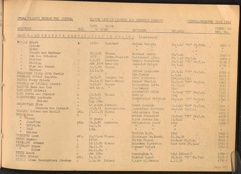Master List of Concentration Camp Victims : Consisting of all people listed by this bureau as missing or deported / Tracing Bureau for Austria