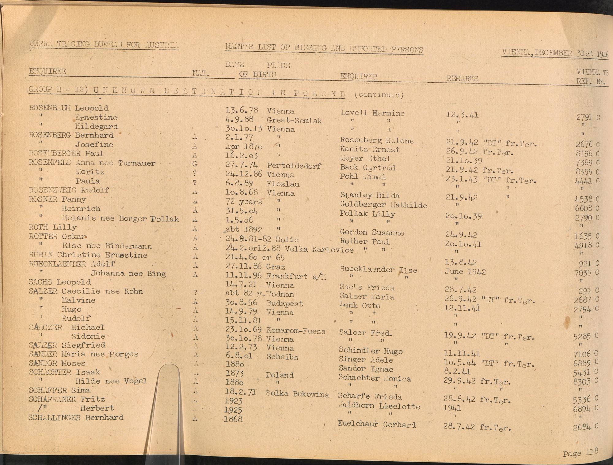 Master List of Concentration Camp Victims : Consisting of all people listed by this bureau as missing or deported / Tracing Bureau for Austria
