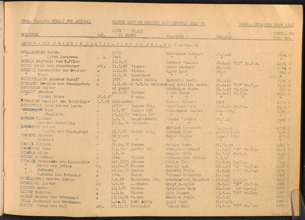 Master List of Concentration Camp Victims : Consisting of all people listed by this bureau as missing or deported / Tracing Bureau for Austria