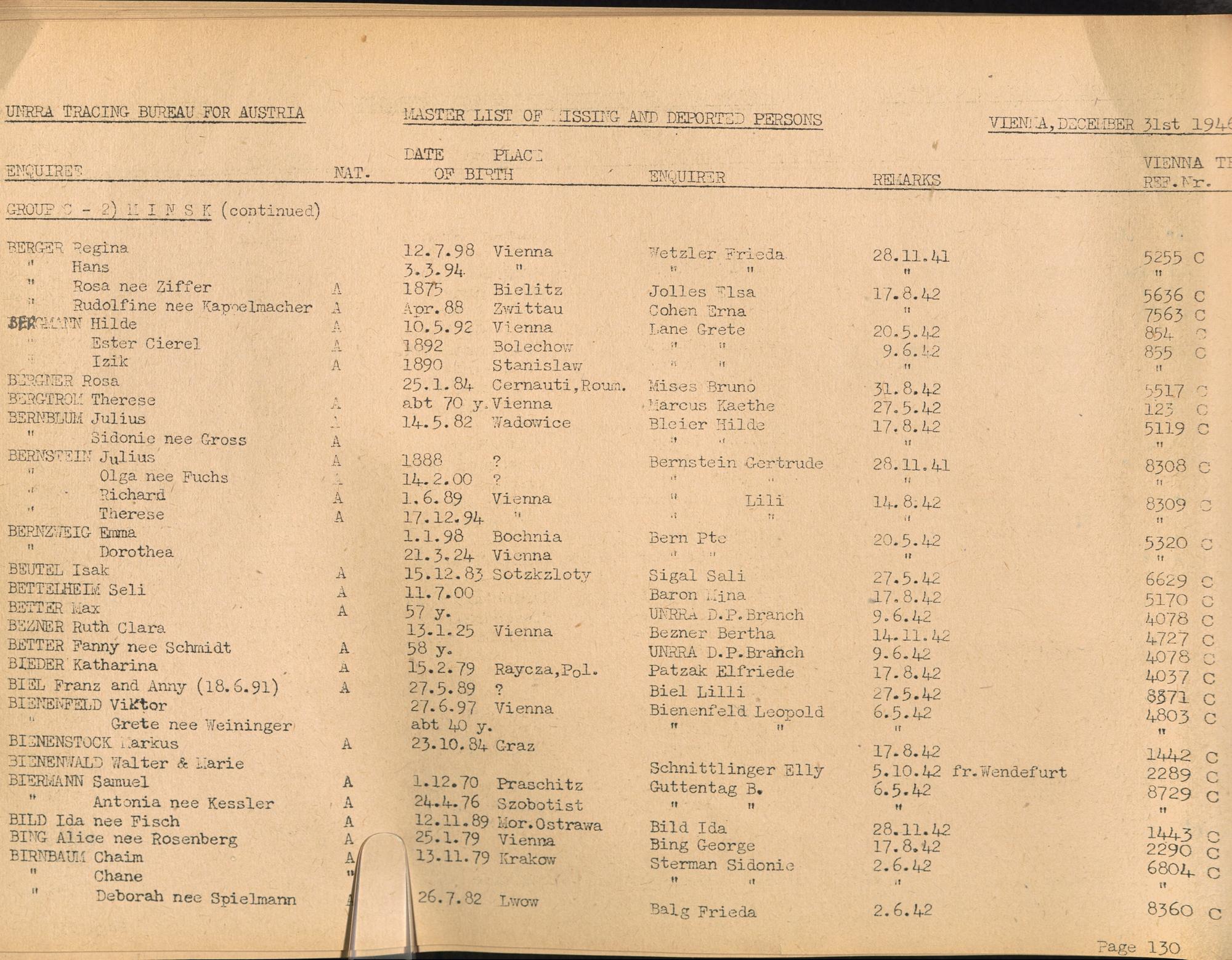 Master List of Concentration Camp Victims : Consisting of all people listed by this bureau as missing or deported / Tracing Bureau for Austria