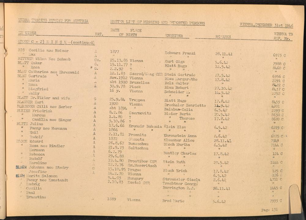 Master List of Concentration Camp Victims : Consisting of all people listed by this bureau as missing or deported / Tracing Bureau for Austria