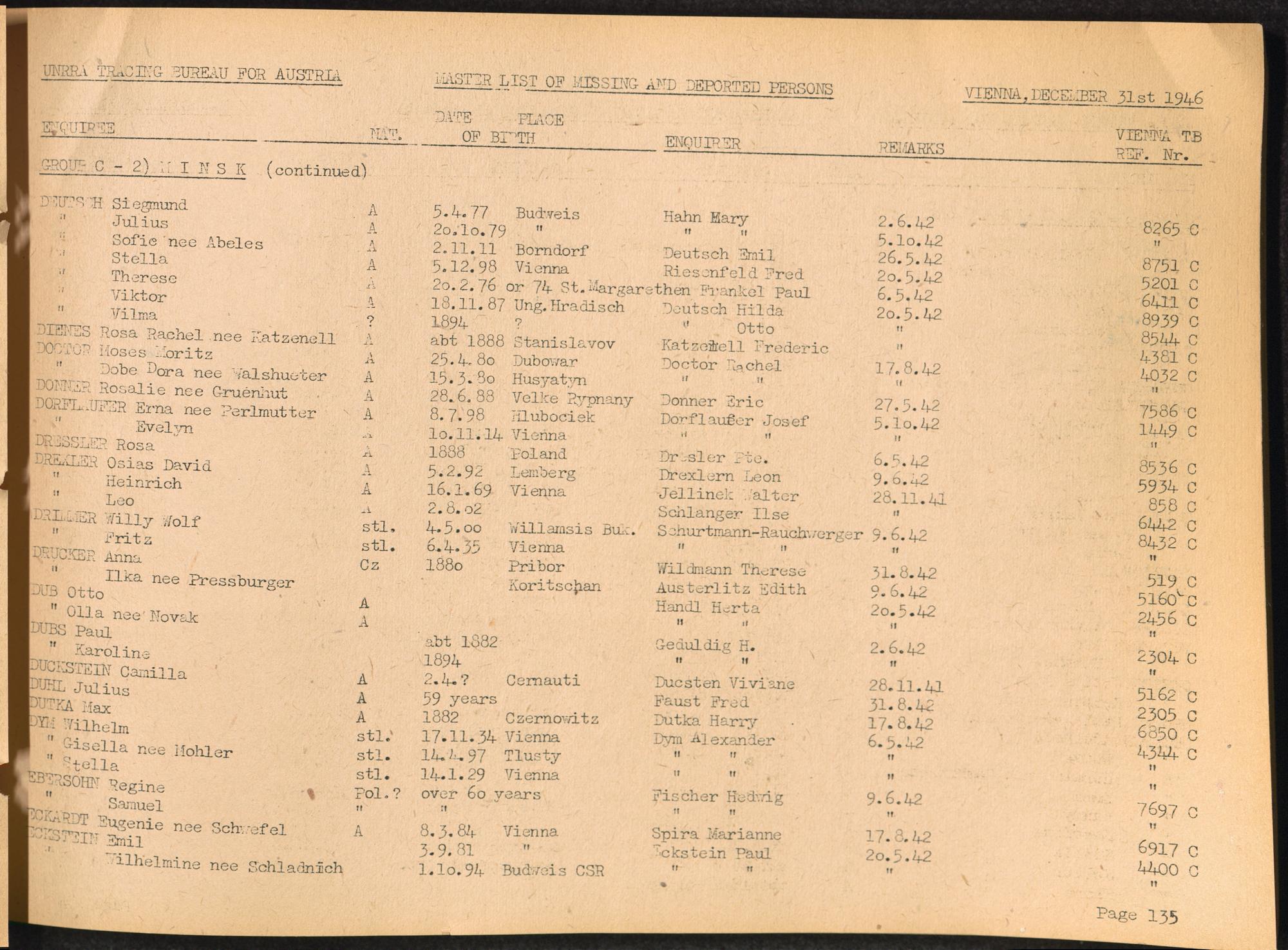 Master List of Concentration Camp Victims : Consisting of all people listed by this bureau as missing or deported / Tracing Bureau for Austria