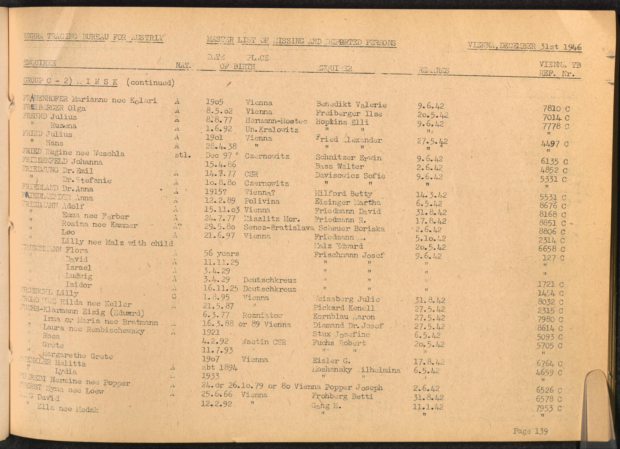 Master List of Concentration Camp Victims : Consisting of all people listed by this bureau as missing or deported / Tracing Bureau for Austria