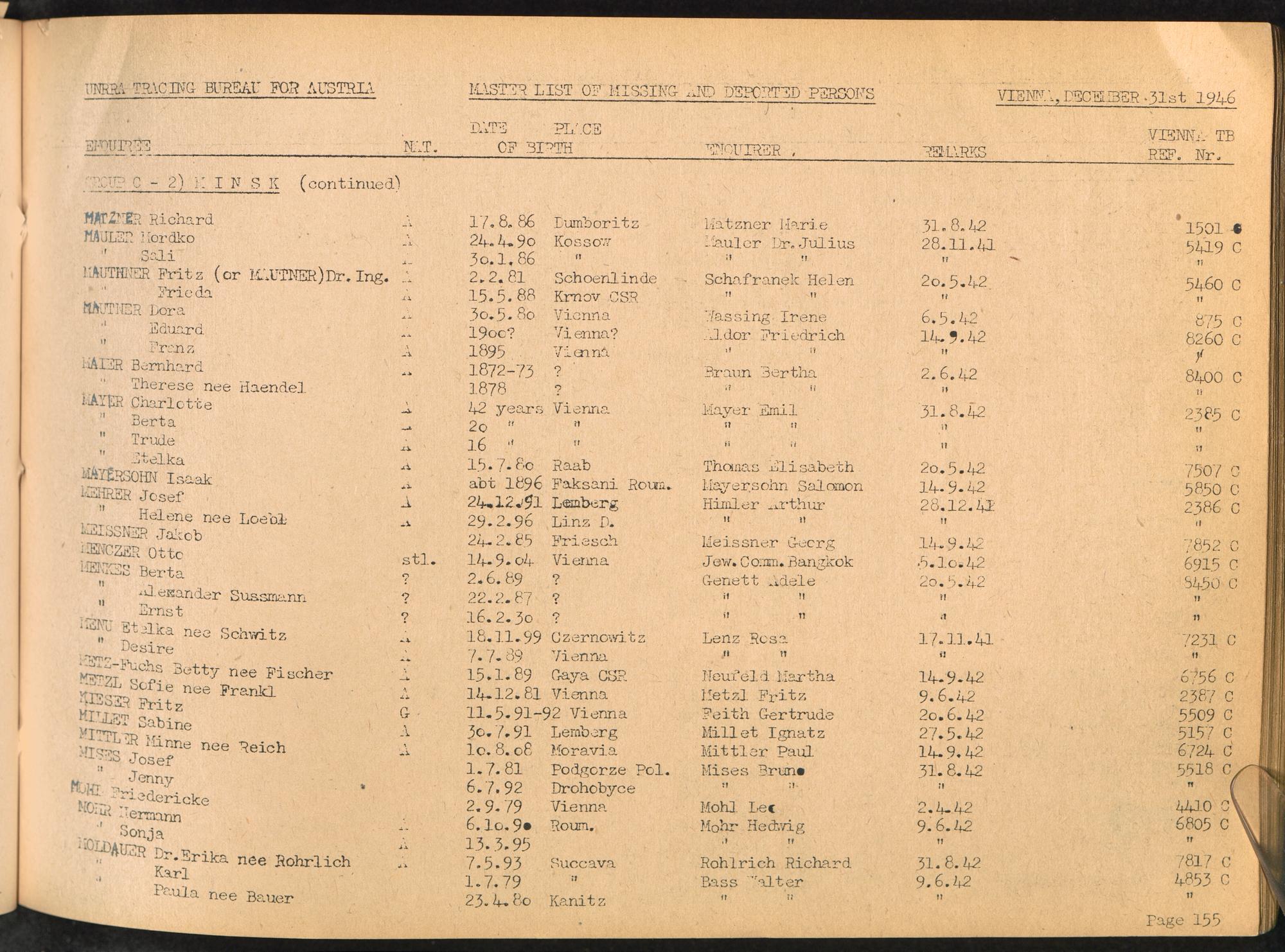 Master List of Concentration Camp Victims : Consisting of all people listed by this bureau as missing or deported / Tracing Bureau for Austria
