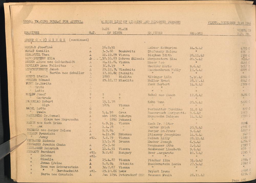 Master List of Concentration Camp Victims : Consisting of all people listed by this bureau as missing or deported / Tracing Bureau for Austria