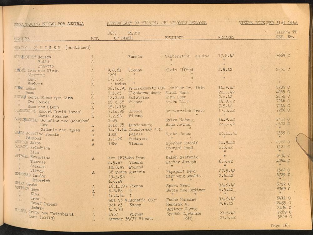 Master List of Concentration Camp Victims : Consisting of all people listed by this bureau as missing or deported / Tracing Bureau for Austria