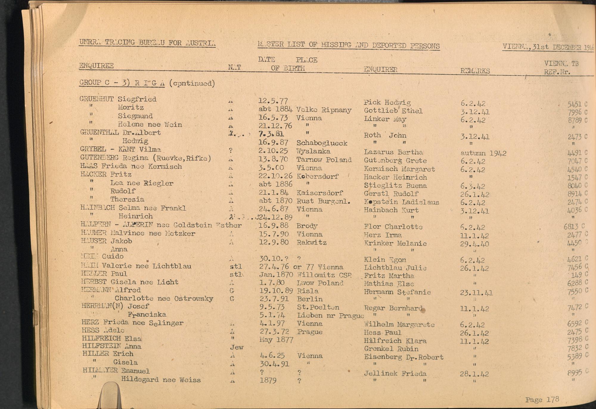 Master List of Concentration Camp Victims : Consisting of all people listed by this bureau as missing or deported / Tracing Bureau for Austria