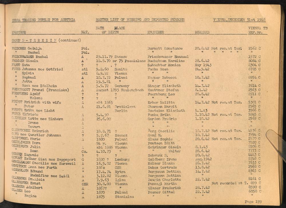 Master List of Concentration Camp Victims : Consisting of all people listed by this bureau as missing or deported / Tracing Bureau for Austria