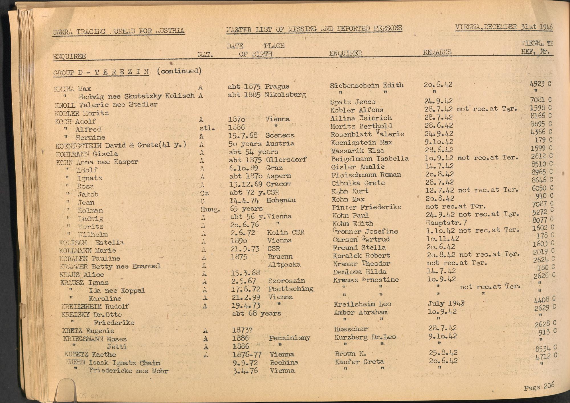 Master List of Concentration Camp Victims : Consisting of all people listed by this bureau as missing or deported / Tracing Bureau for Austria