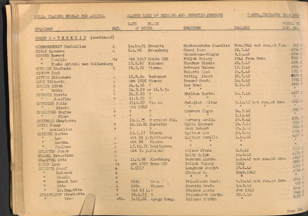 Master List of Concentration Camp Victims : Consisting of all people listed by this bureau as missing or deported / Tracing Bureau for Austria