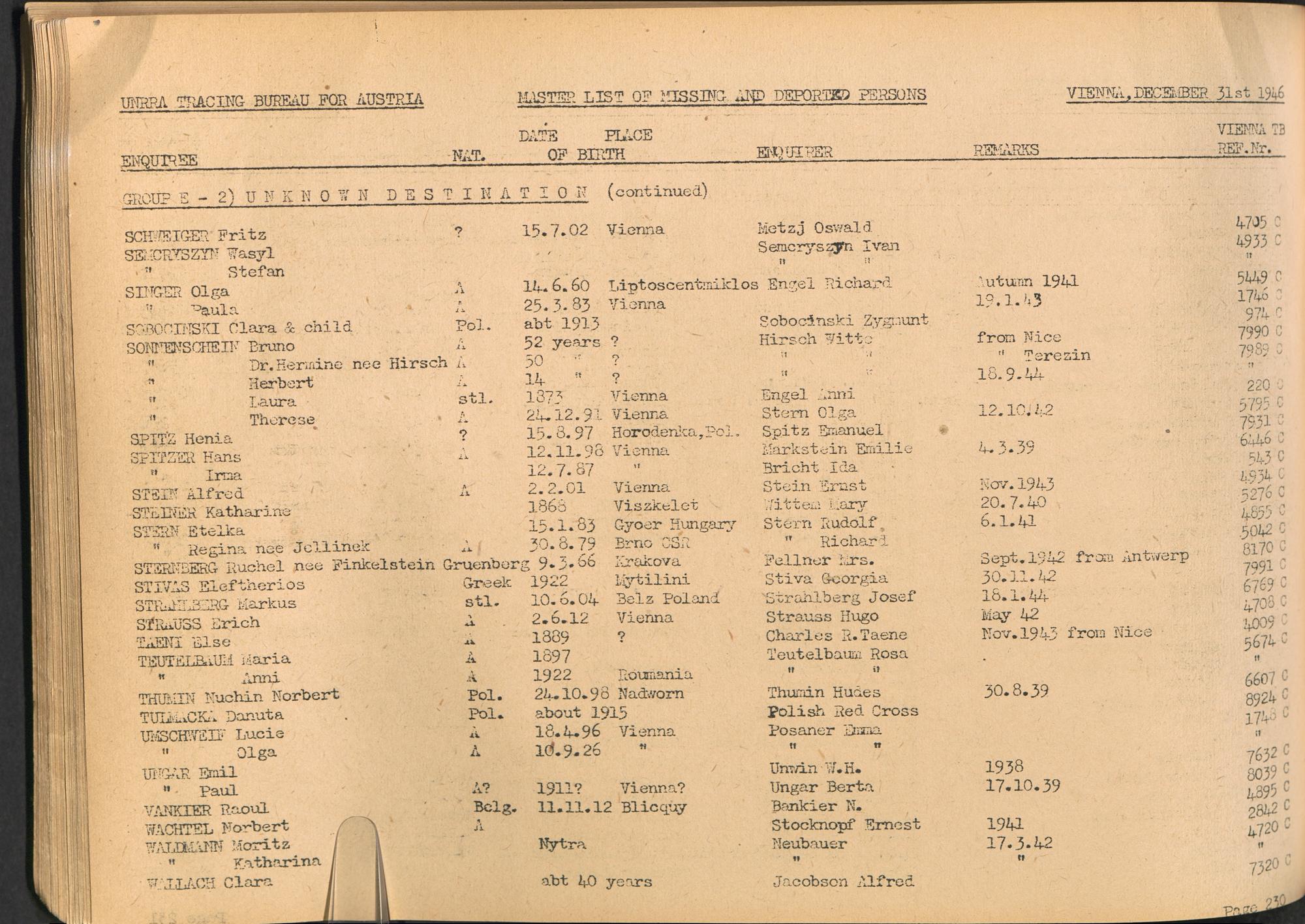 Master List of Concentration Camp Victims : Consisting of all people listed by this bureau as missing or deported / Tracing Bureau for Austria