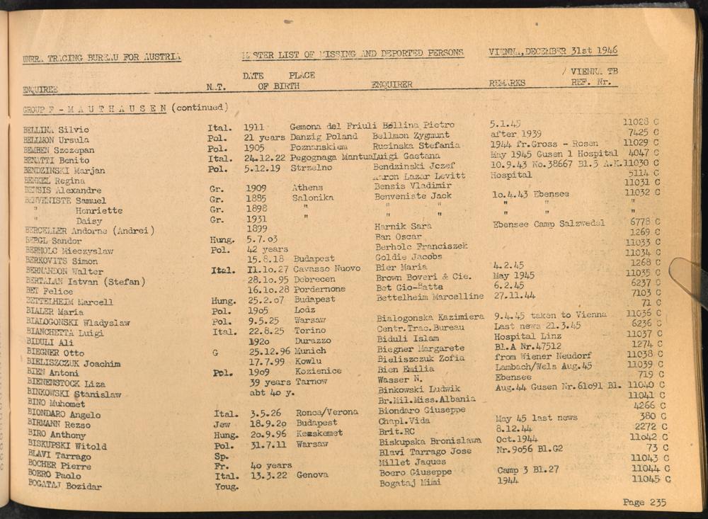 Master List of Concentration Camp Victims : Consisting of all people listed by this bureau as missing or deported / Tracing Bureau for Austria