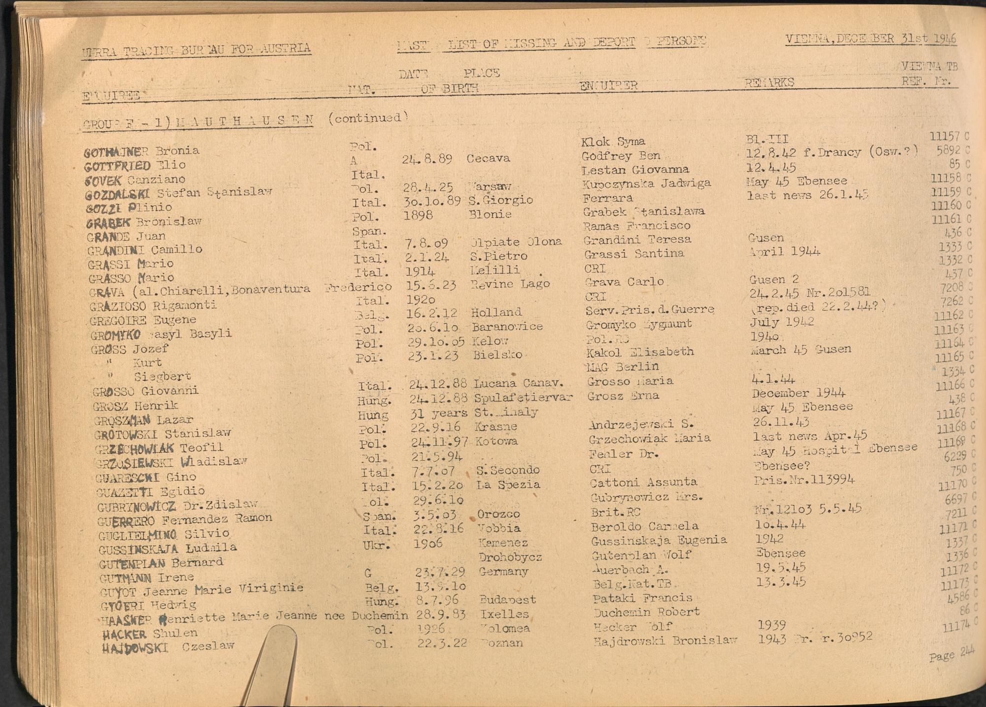 Master List of Concentration Camp Victims : Consisting of all people listed by this bureau as missing or deported / Tracing Bureau for Austria