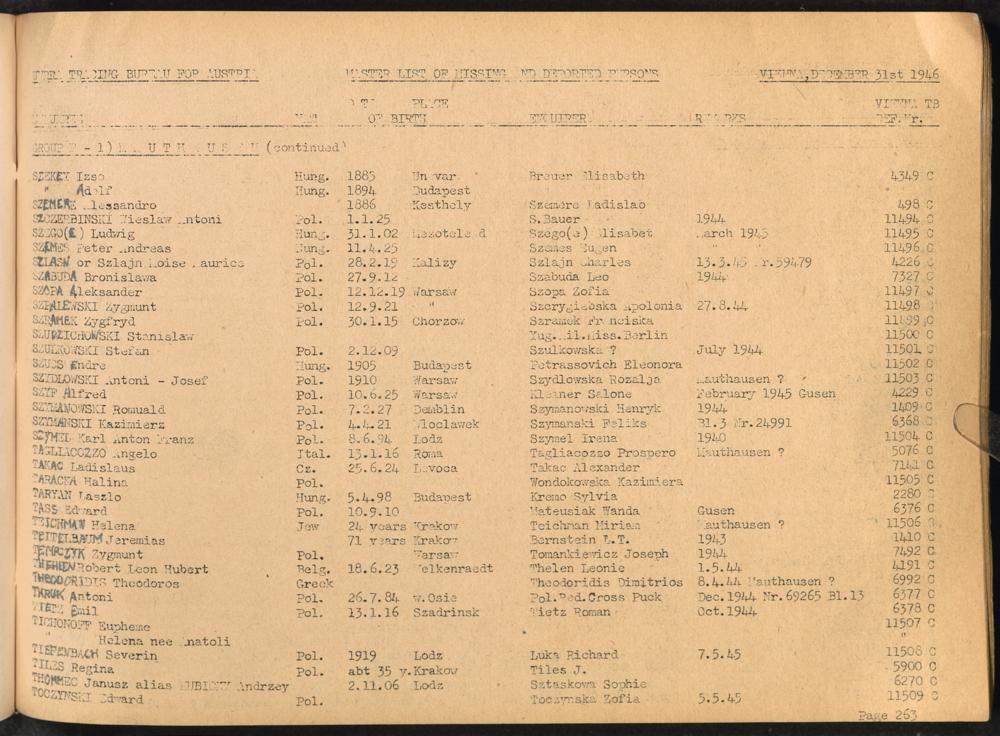 Master List of Concentration Camp Victims : Consisting of all people listed by this bureau as missing or deported / Tracing Bureau for Austria