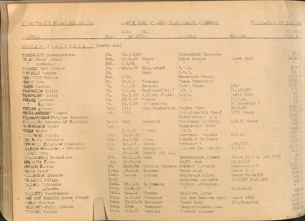 Master List of Concentration Camp Victims : Consisting of all people listed by this bureau as missing or deported / Tracing Bureau for Austria