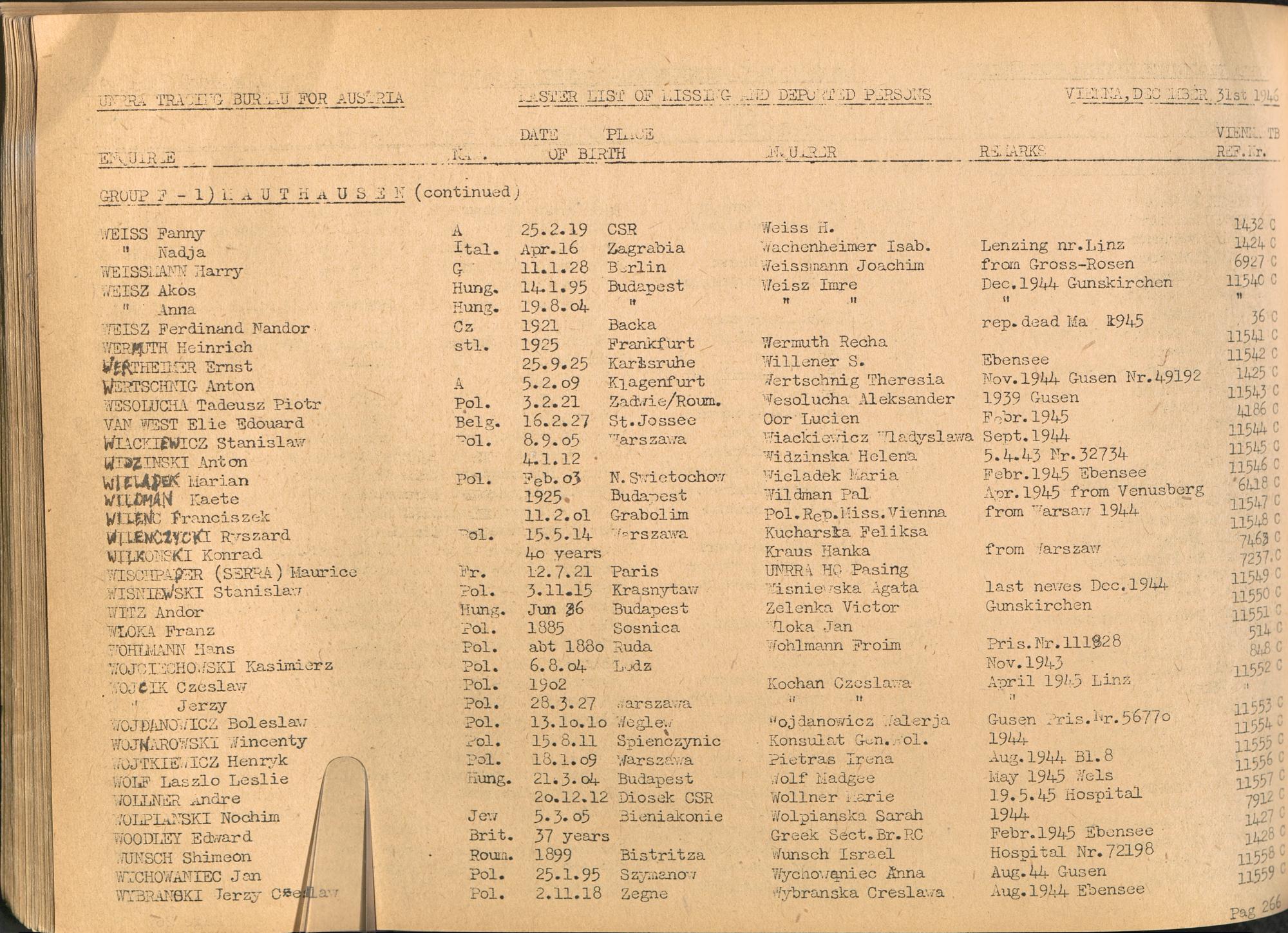 Master List of Concentration Camp Victims : Consisting of all people listed by this bureau as missing or deported / Tracing Bureau for Austria