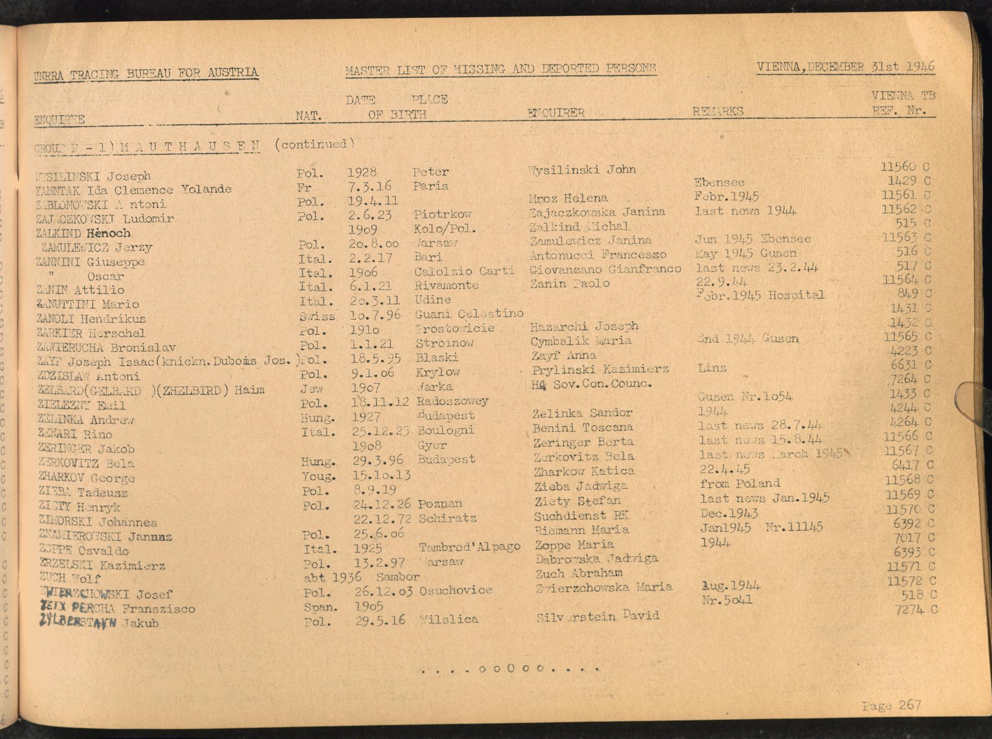 Master List of Concentration Camp Victims : Consisting of all people listed by this bureau as missing or deported / Tracing Bureau for Austria