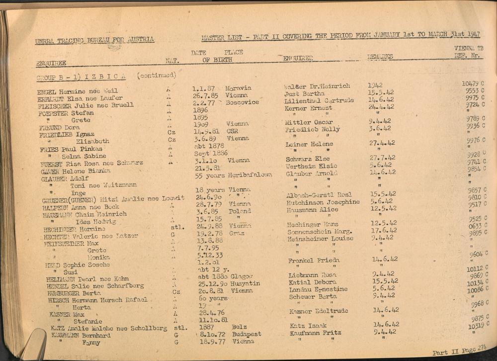 Master List of Concentration Camp Victims : Consisting of all people listed by this bureau as missing or deported / Tracing Bureau for Austria