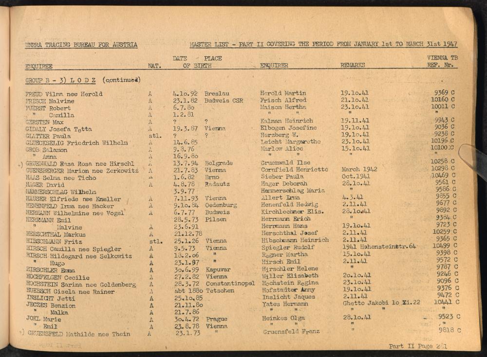 Master List of Concentration Camp Victims : Consisting of all people listed by this bureau as missing or deported / Tracing Bureau for Austria