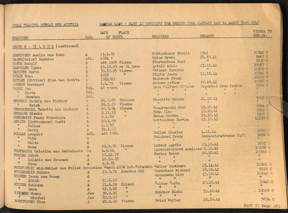 Master List of Concentration Camp Victims : Consisting of all people listed by this bureau as missing or deported / Tracing Bureau for Austria