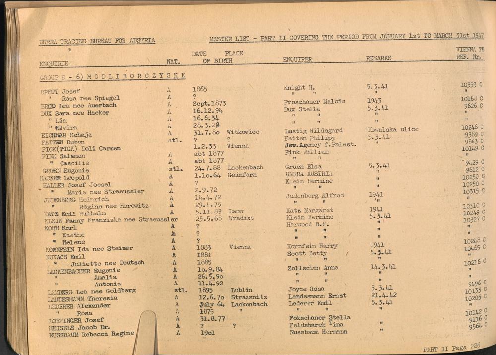 Master List of Concentration Camp Victims : Consisting of all people listed by this bureau as missing or deported / Tracing Bureau for Austria