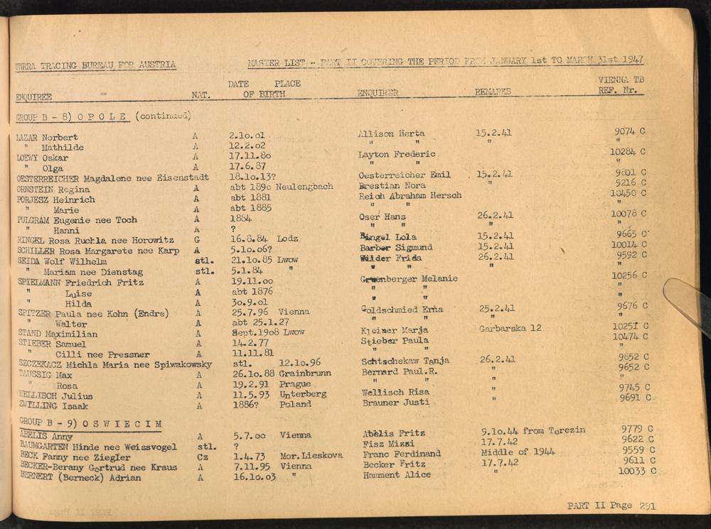 Master List of Concentration Camp Victims : Consisting of all people listed by this bureau as missing or deported / Tracing Bureau for Austria