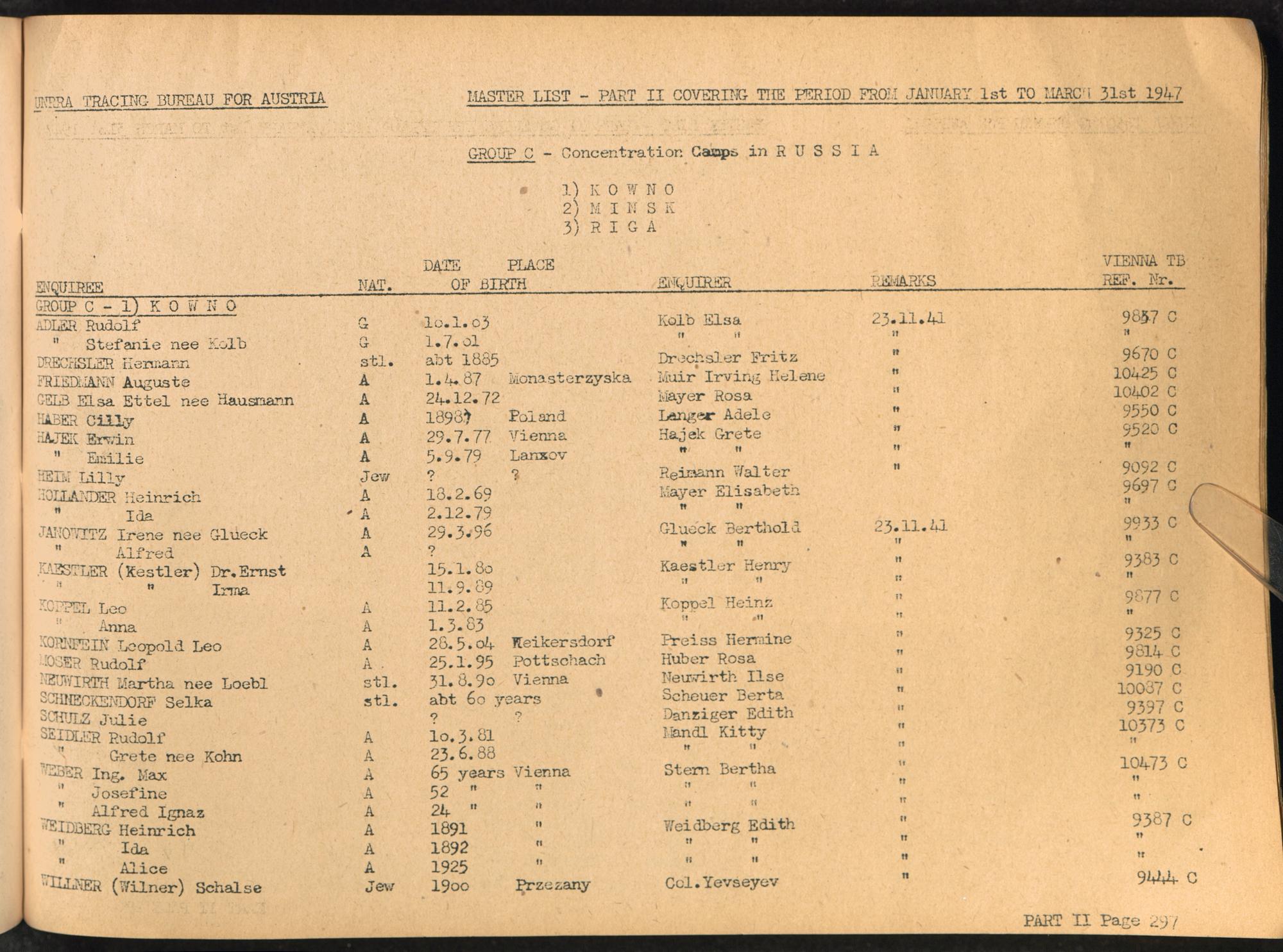 Master List of Concentration Camp Victims : Consisting of all people listed by this bureau as missing or deported / Tracing Bureau for Austria