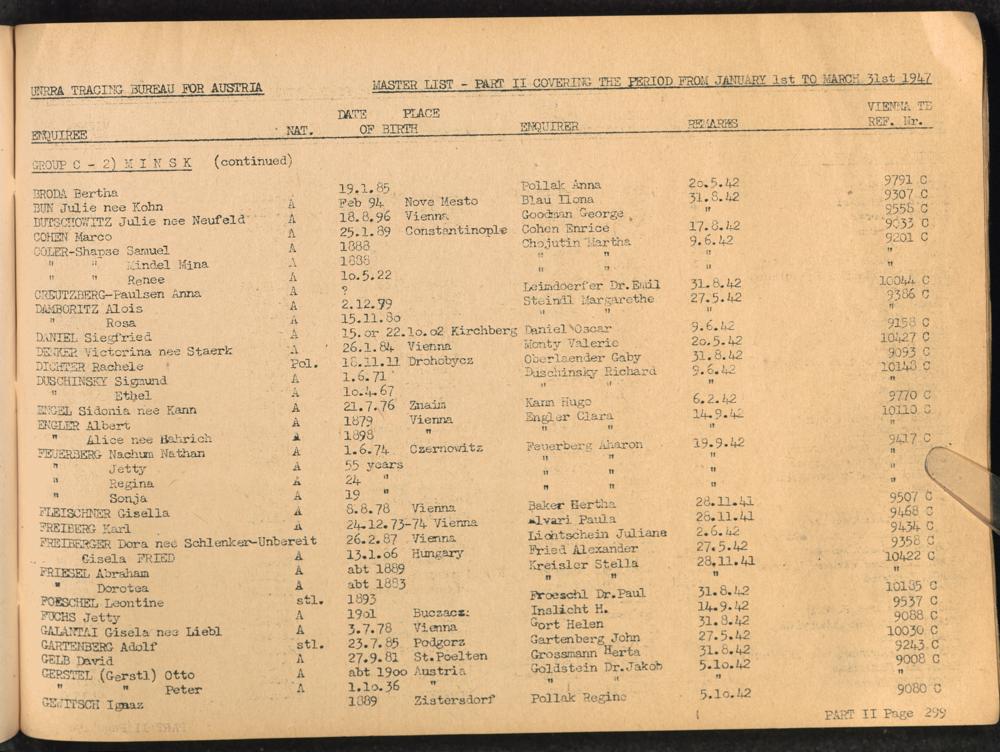 Master List of Concentration Camp Victims : Consisting of all people listed by this bureau as missing or deported / Tracing Bureau for Austria