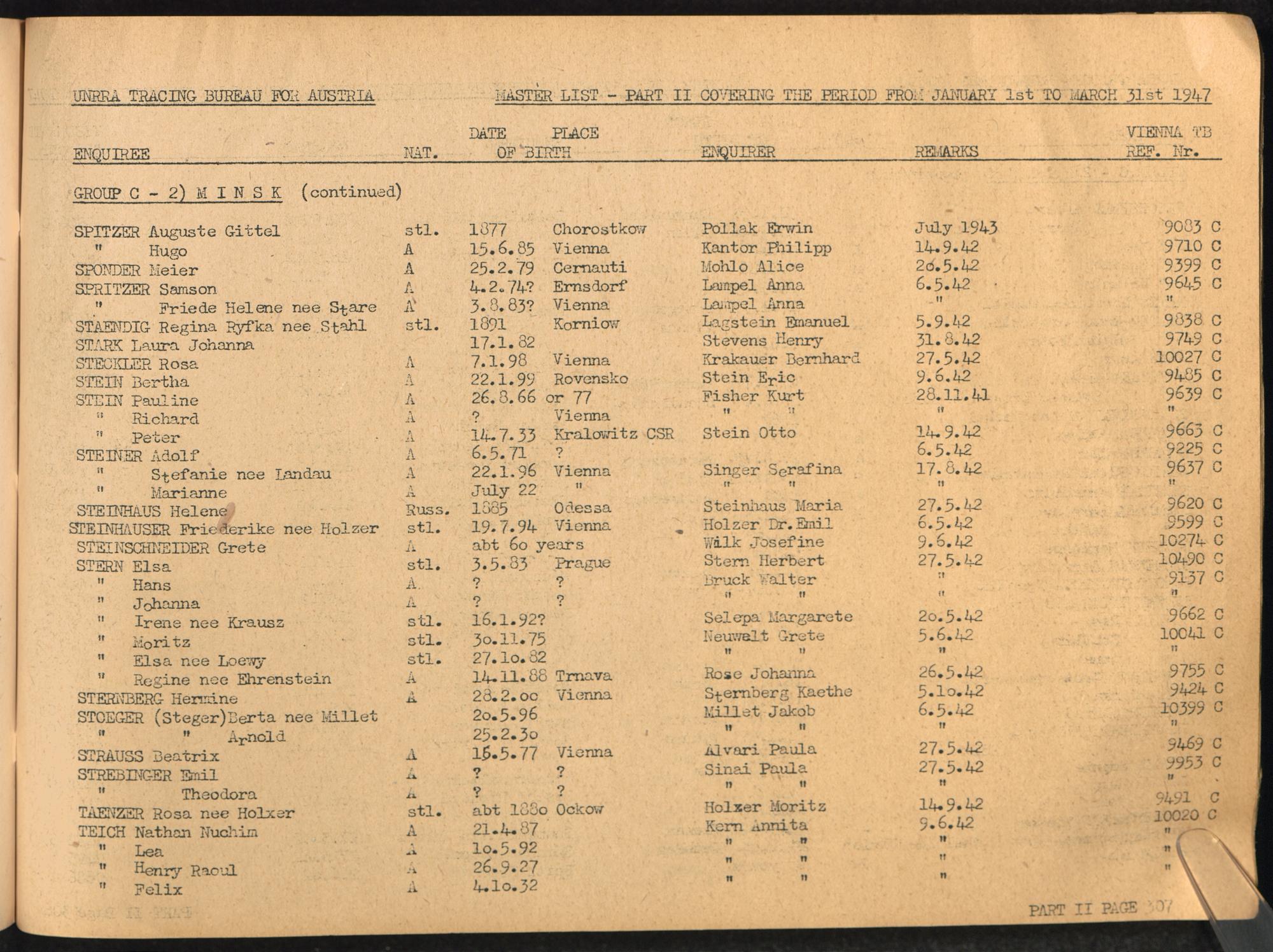 Master List of Concentration Camp Victims : Consisting of all people listed by this bureau as missing or deported / Tracing Bureau for Austria