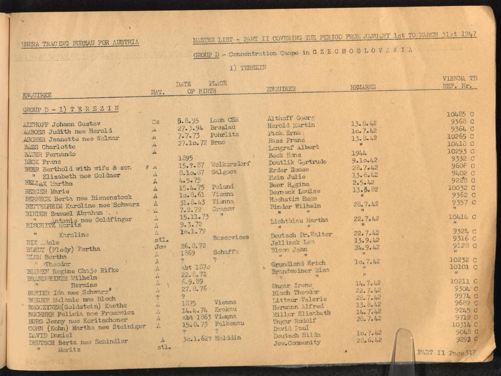 Master List of Concentration Camp Victims : Consisting of all people listed by this bureau as missing or deported / Tracing Bureau for Austria