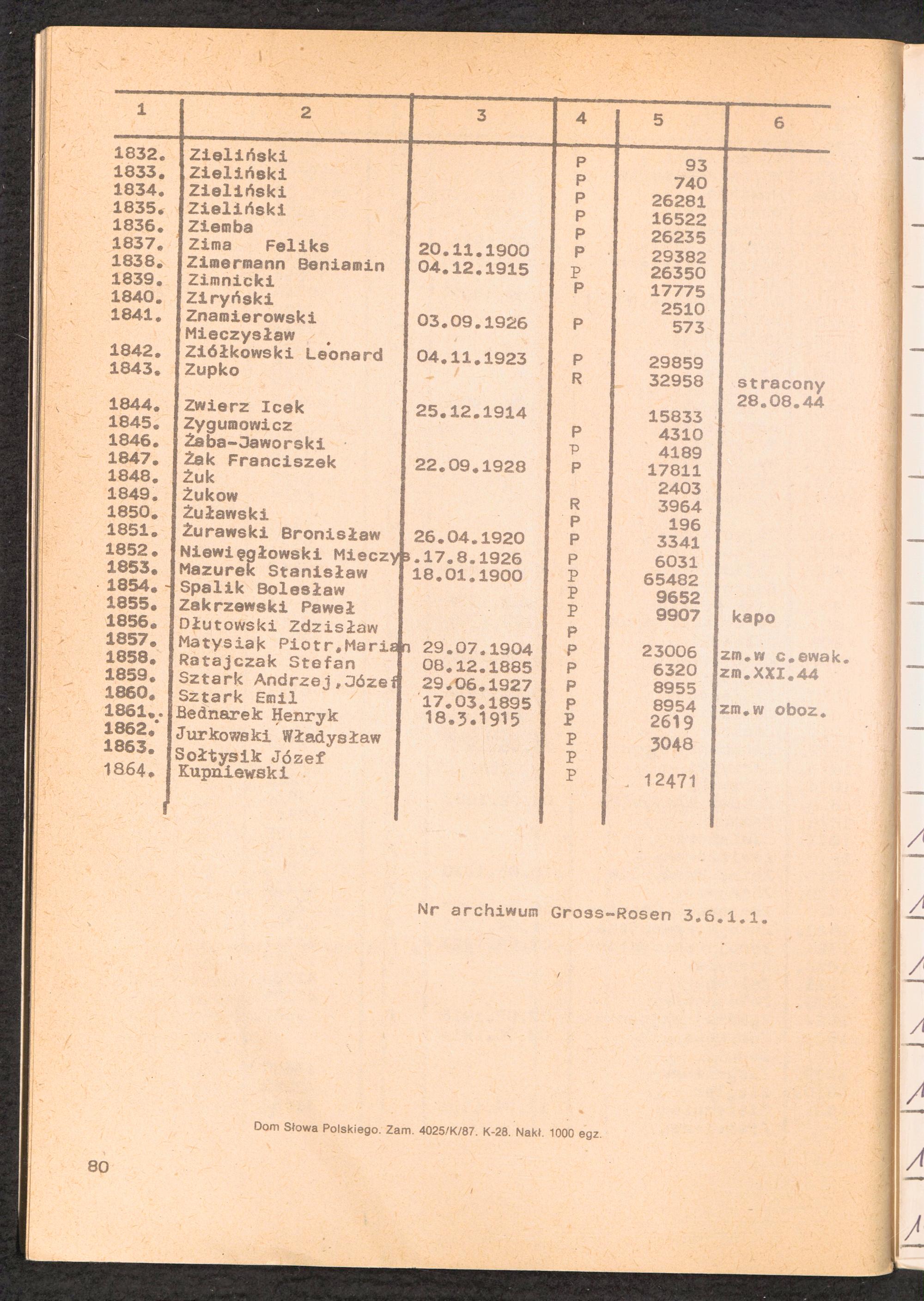 1987: Przezylismy Gross Rosen Tom II, Filie obozu kocentracyjnego Gross-Rosen, Zeszyt 5 : Kommando Dyhernfurth II