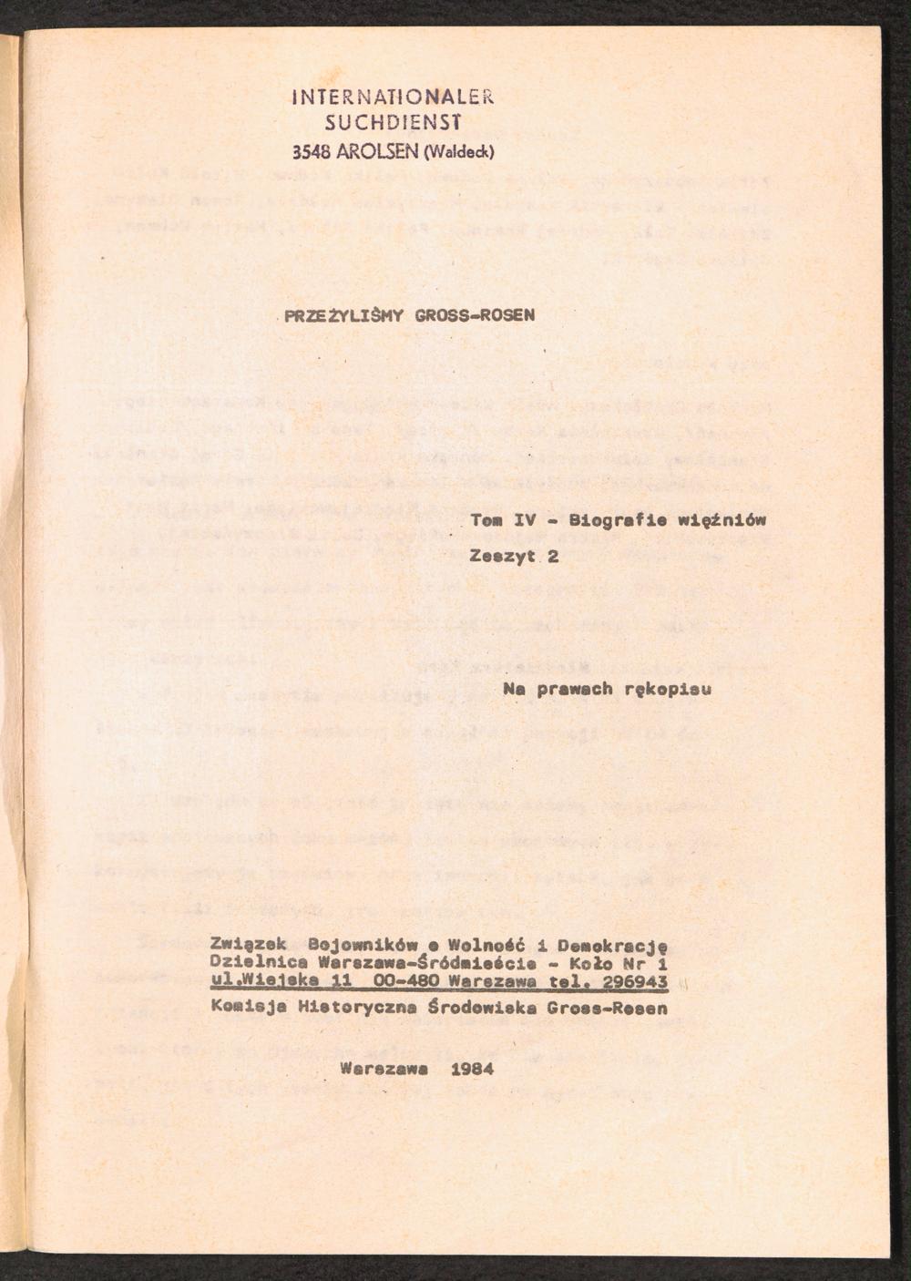 1984: Przezylismy Gross Rosen Tom IV, Biografie wieczniow, Zeszyt 2 : Wykaz pomordowanych ze zbiorow Romana Olszyny