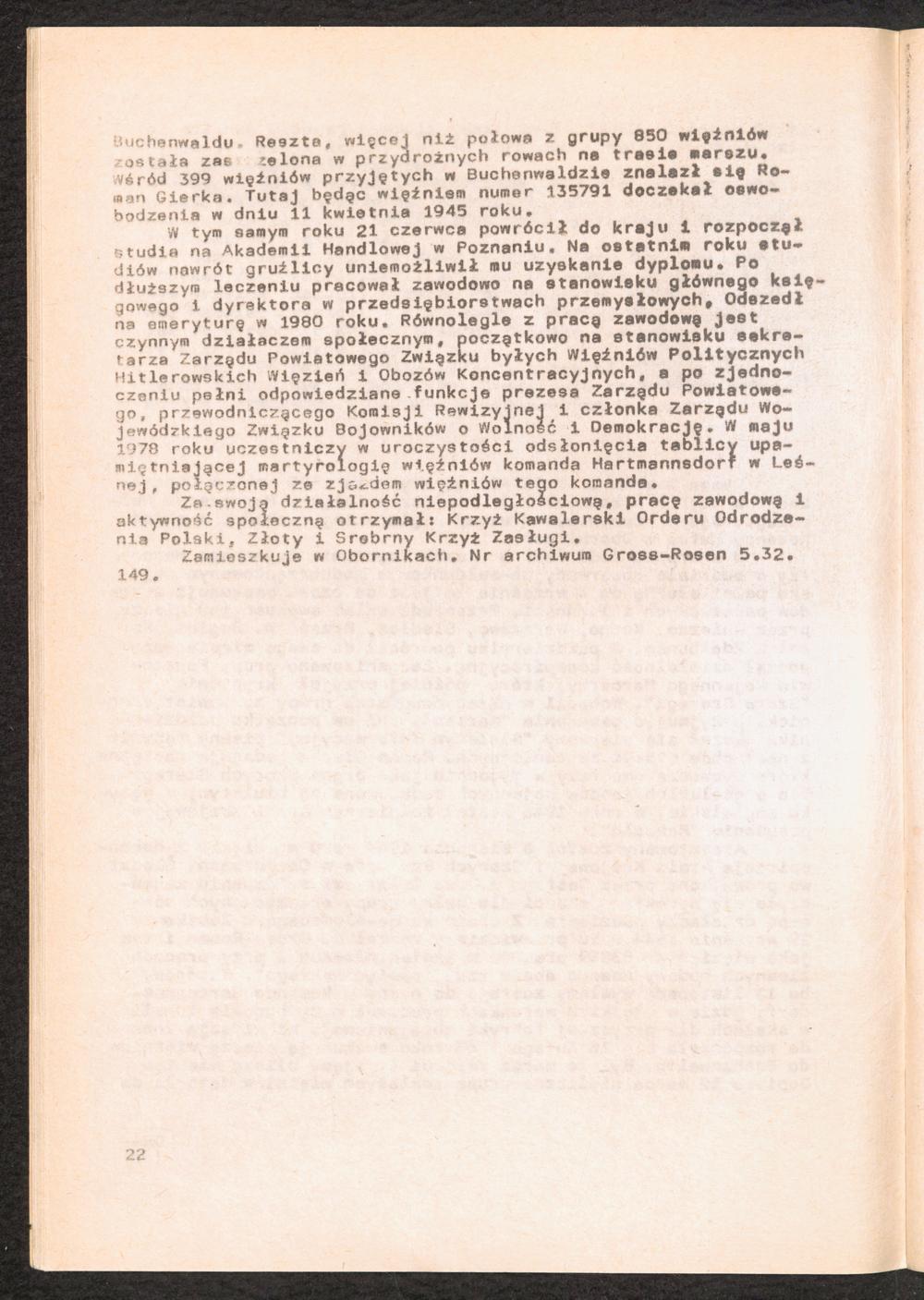 1984: Przezylismy Gross Rosen Tom IV, Biografie wieczniow, Zeszyt 2 : Wykaz pomordowanych ze zbiorow Romana Olszyny